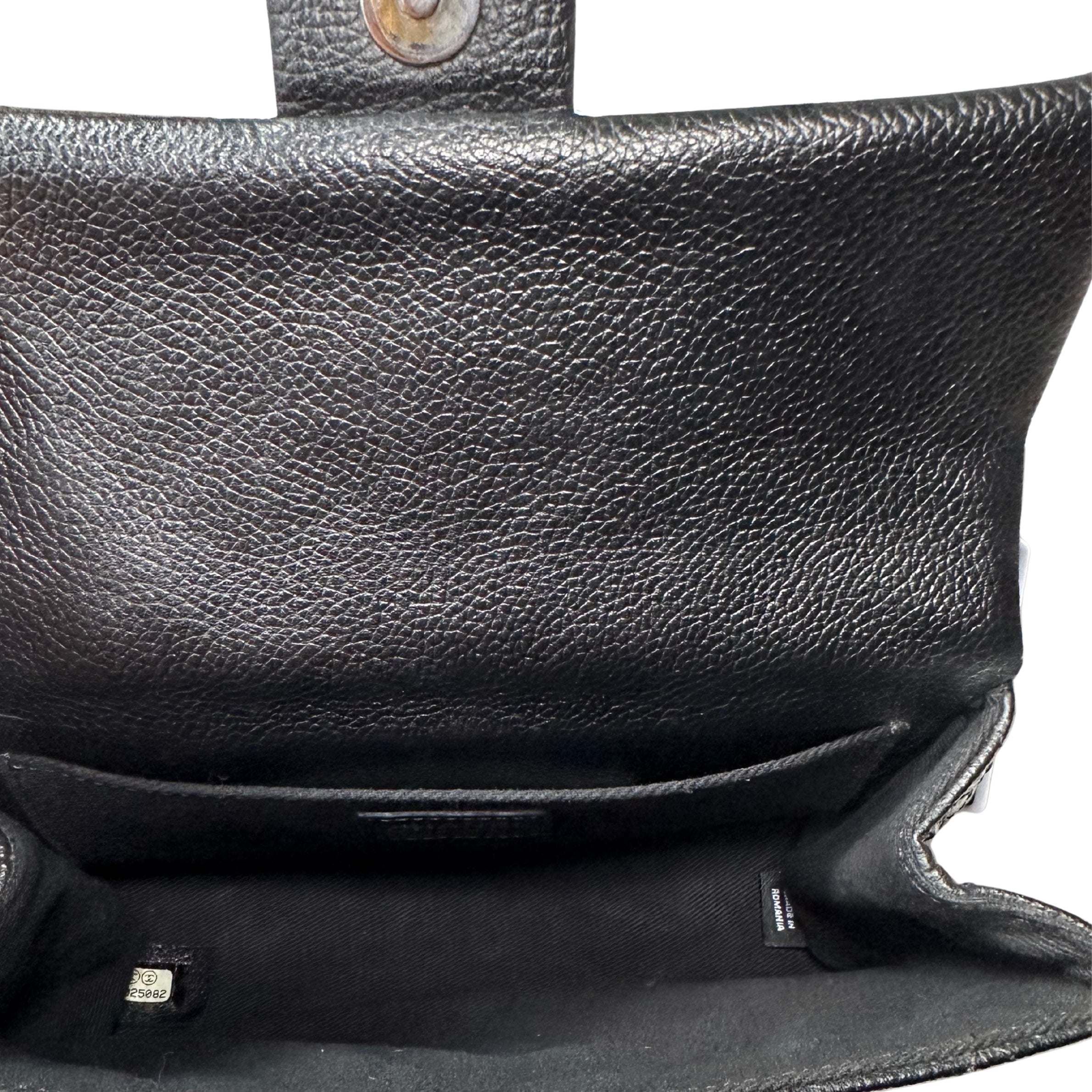 - Black matelasse quilted leather exterior