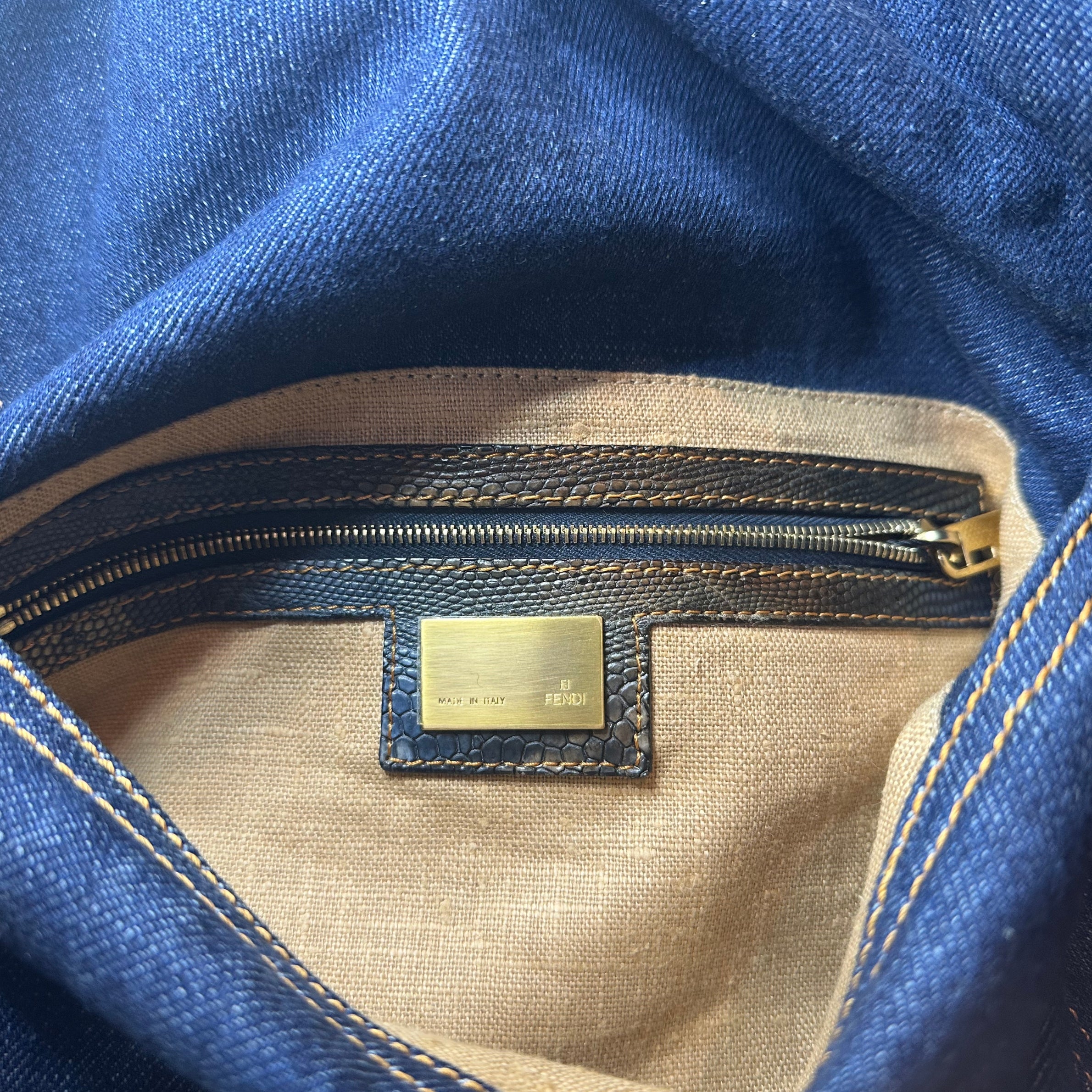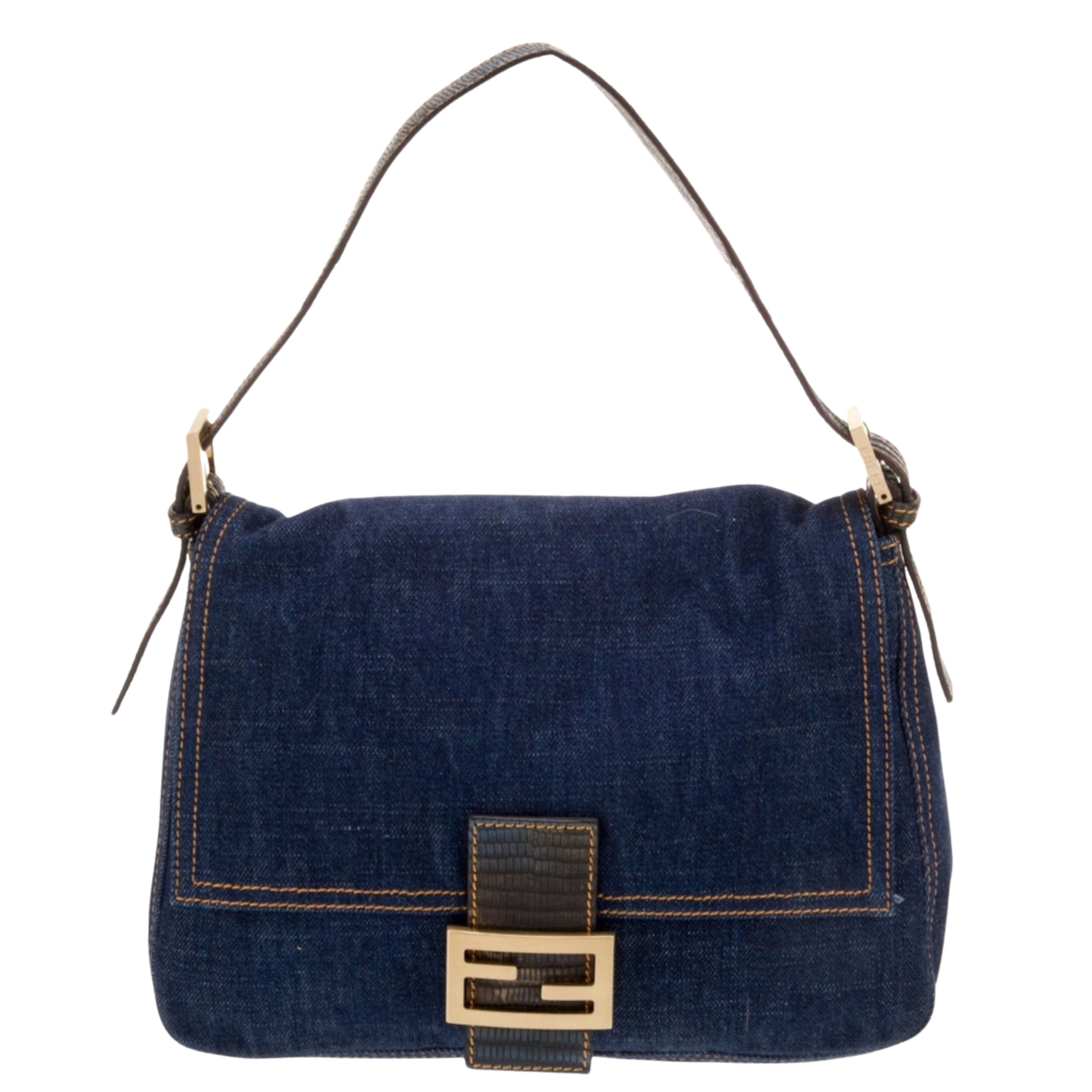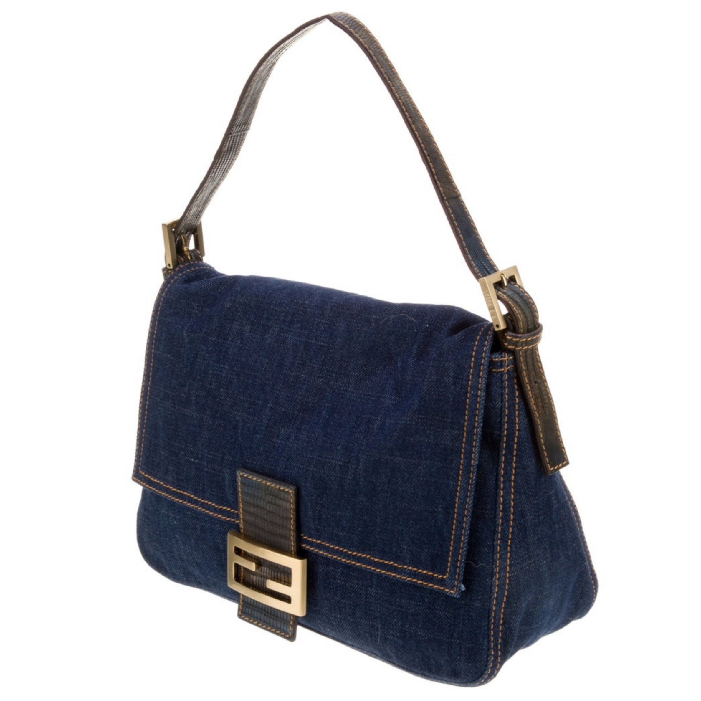 • Fendi Denim Lizard Trimmed Mamma Baguette