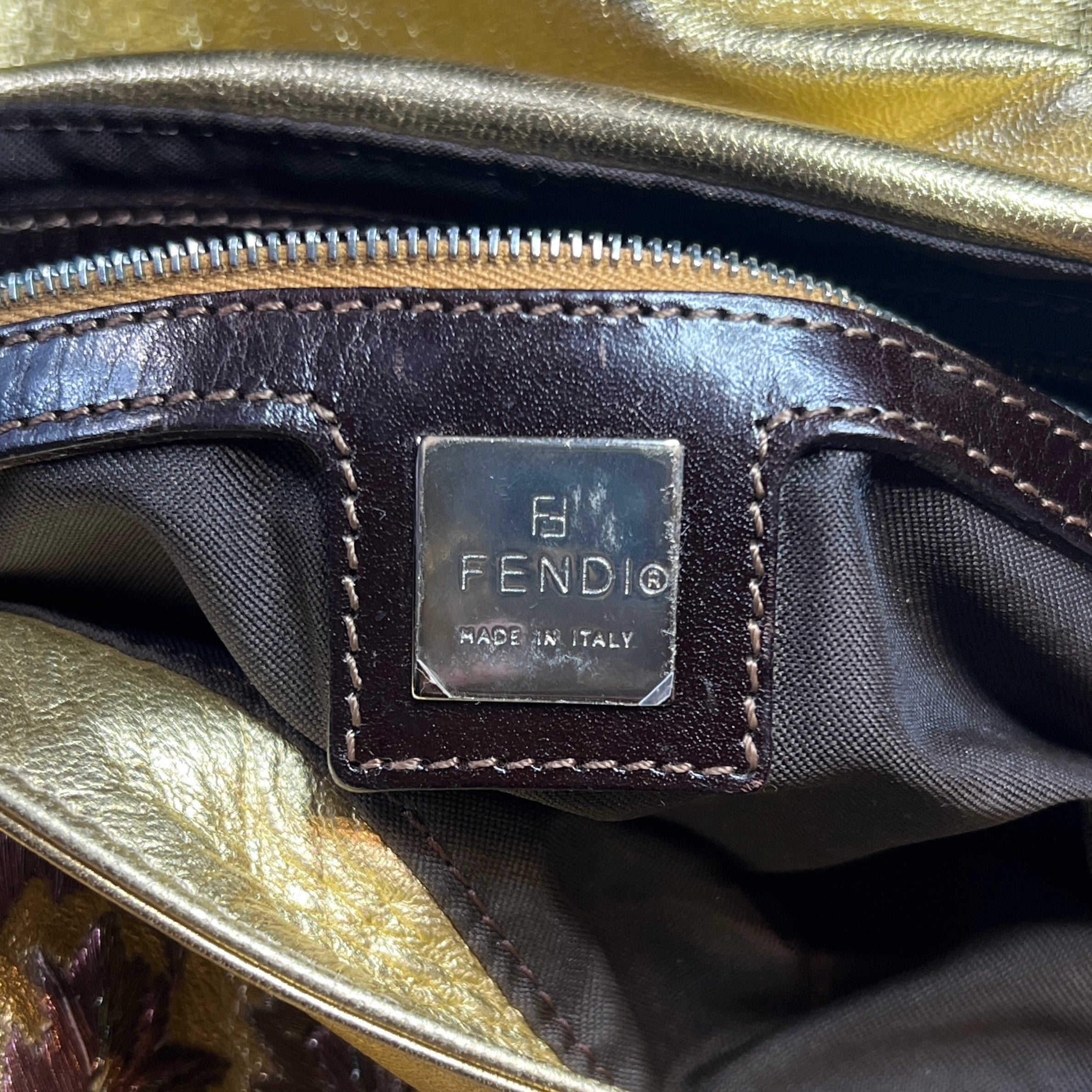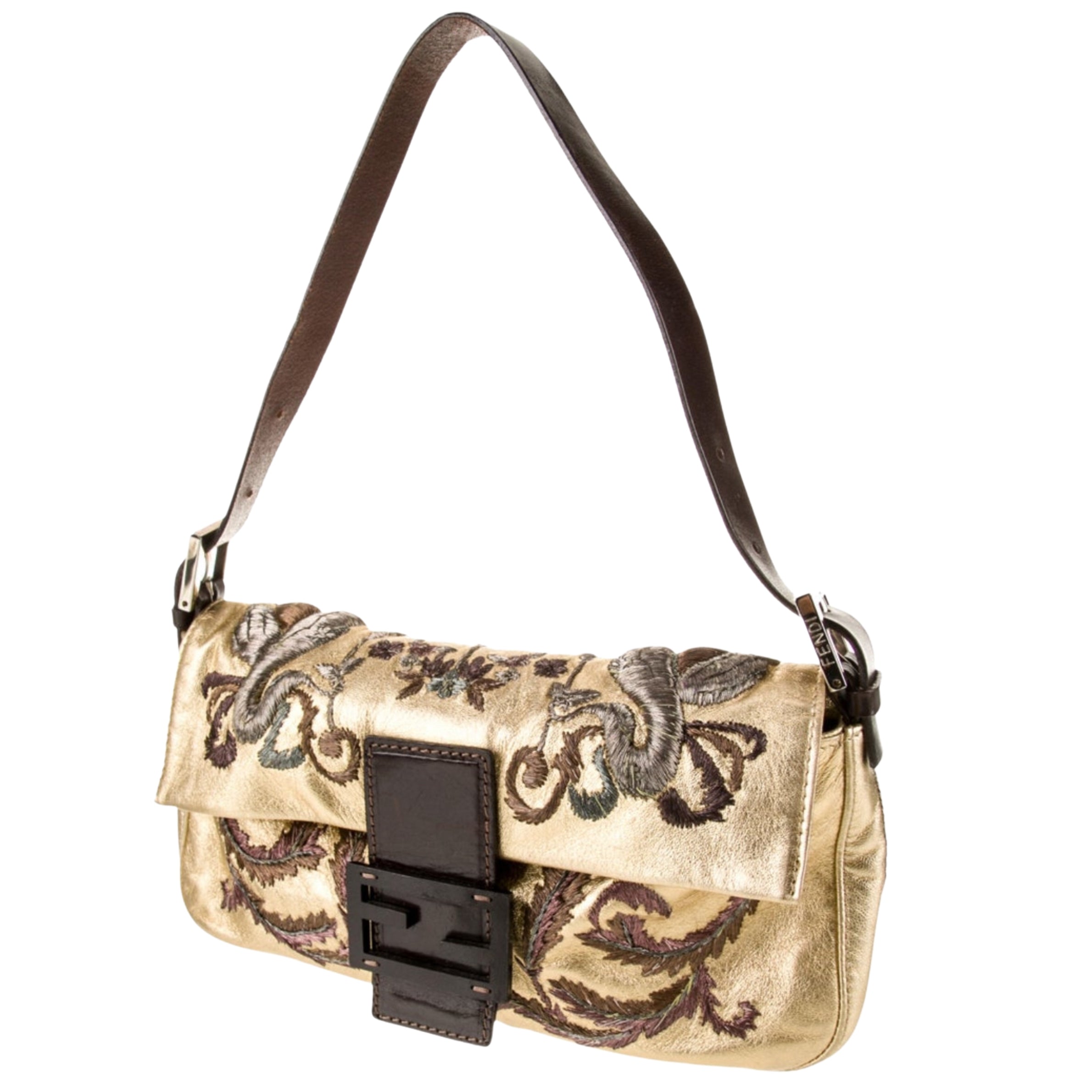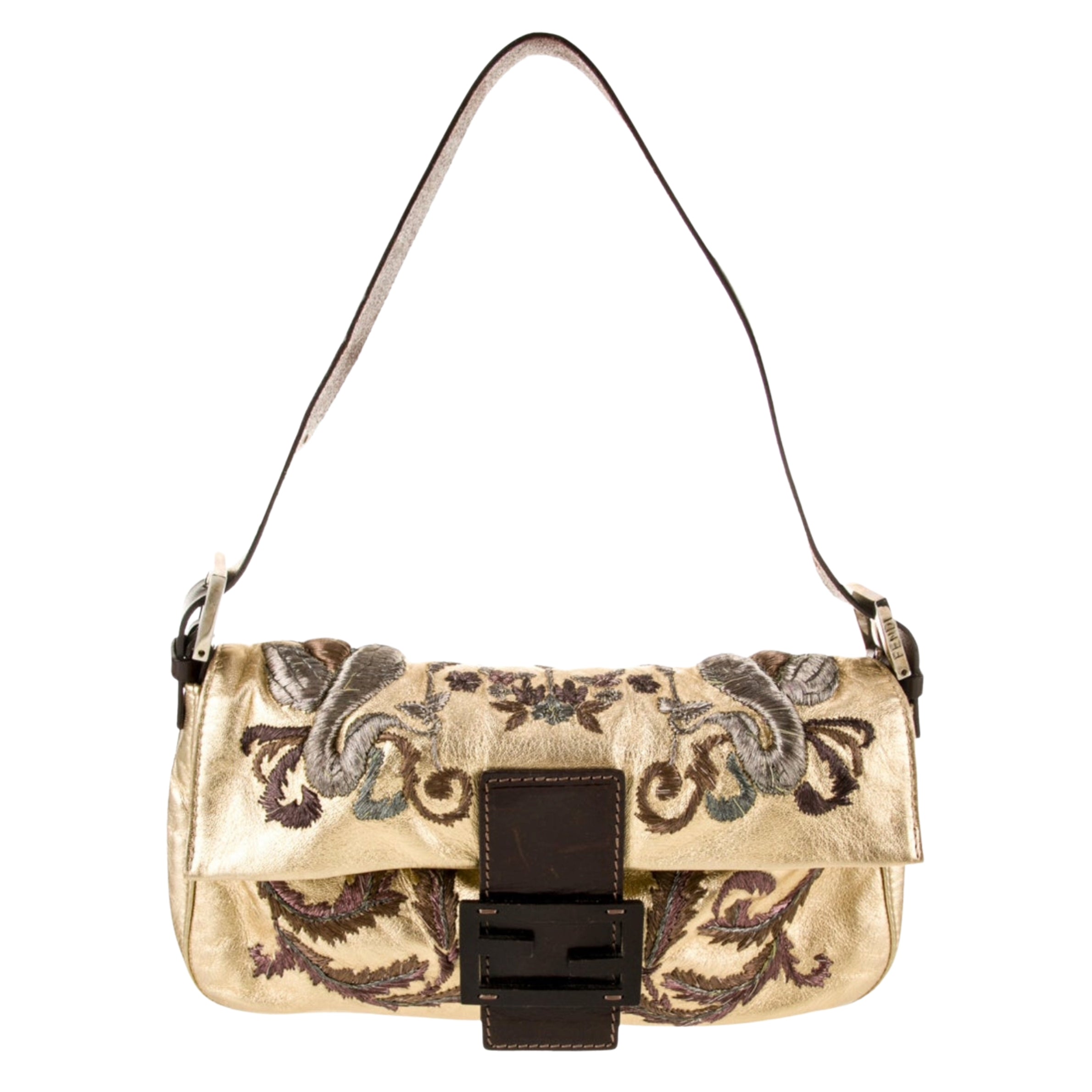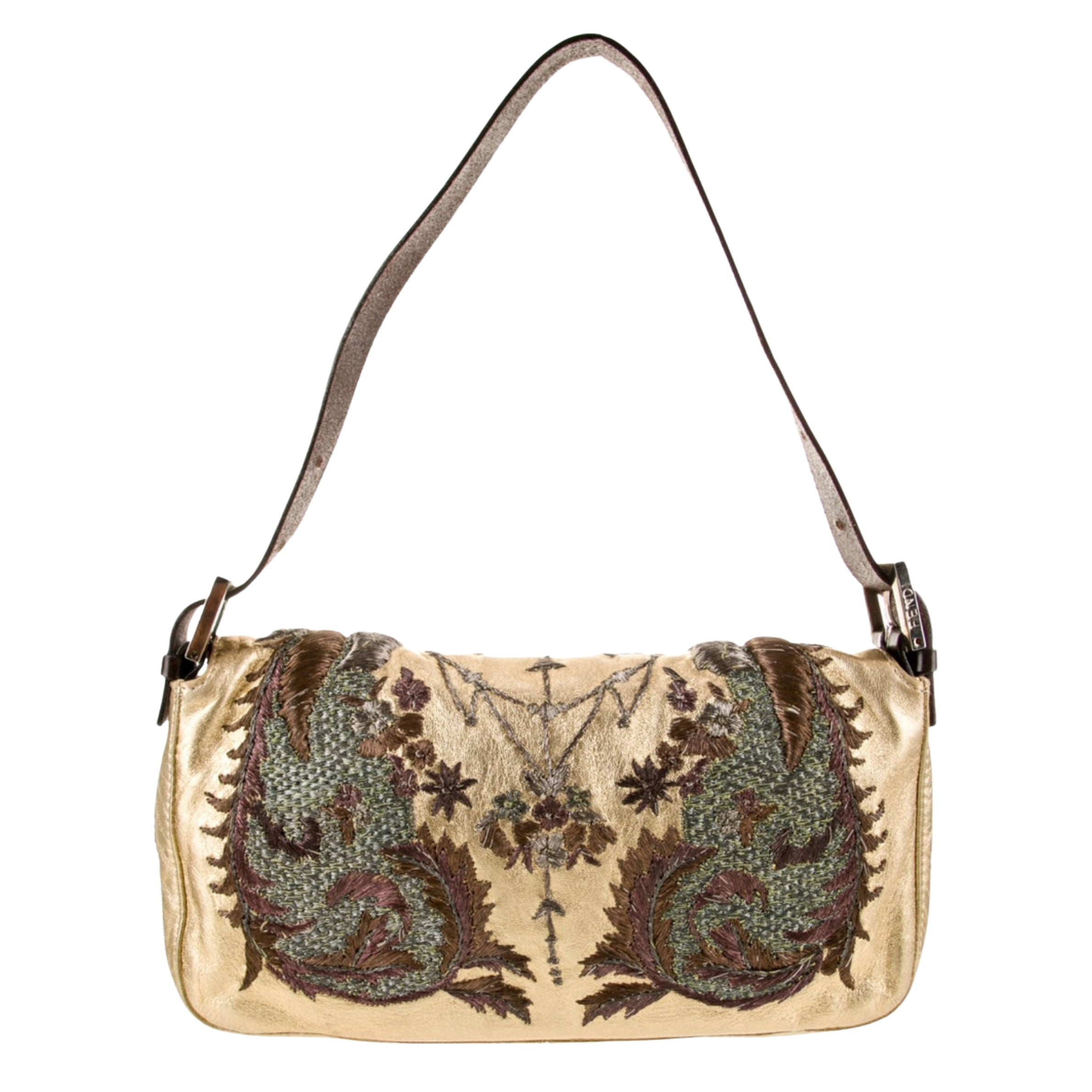 - Fendi Embroidered Gold Leather Baguette