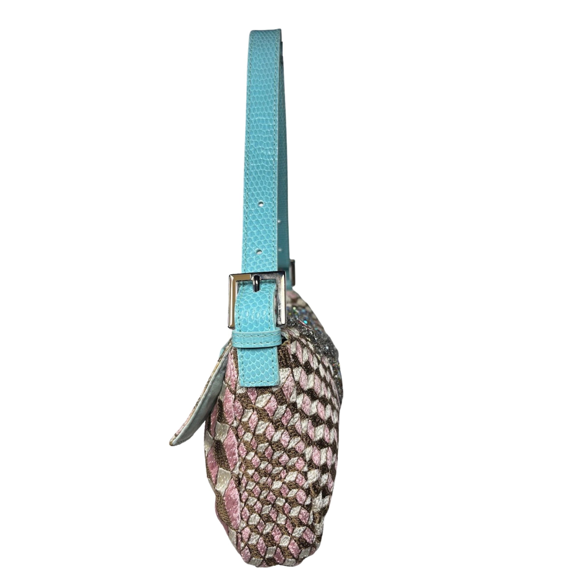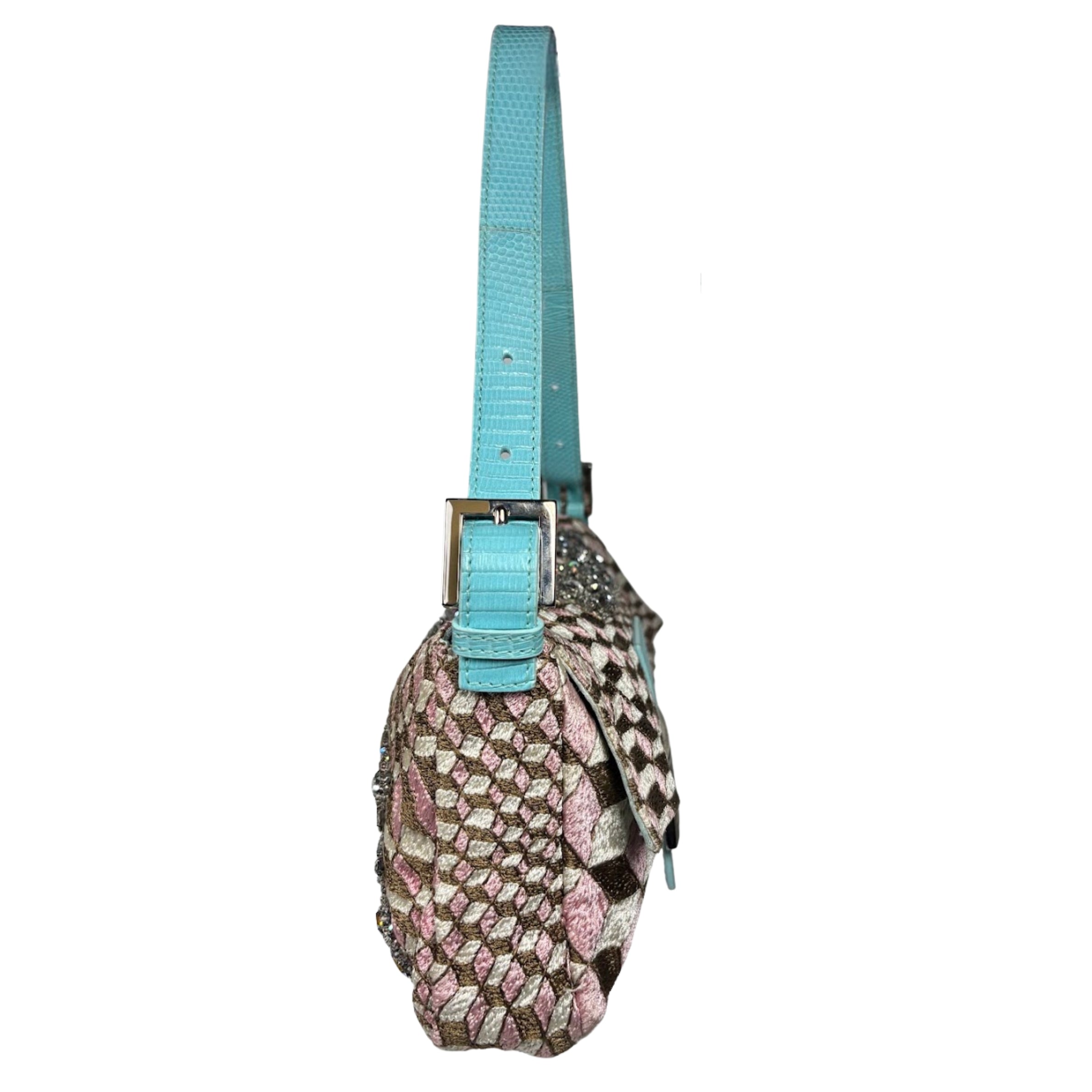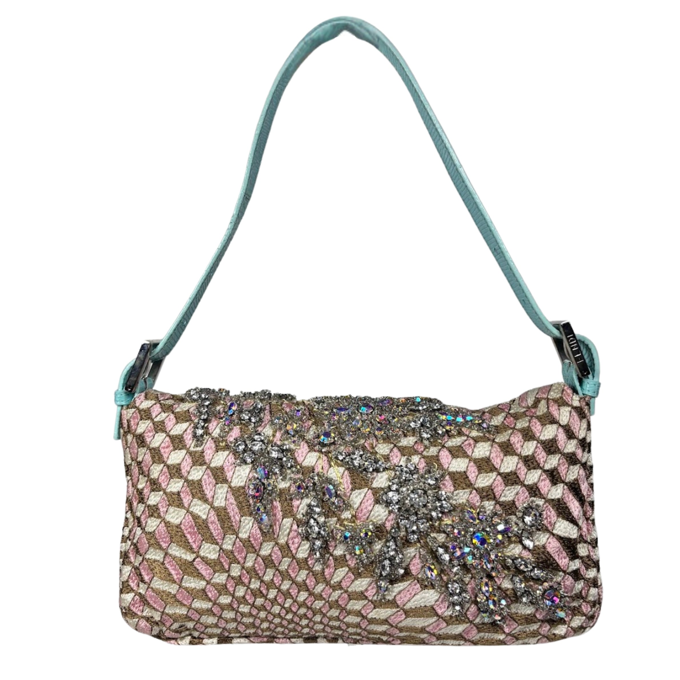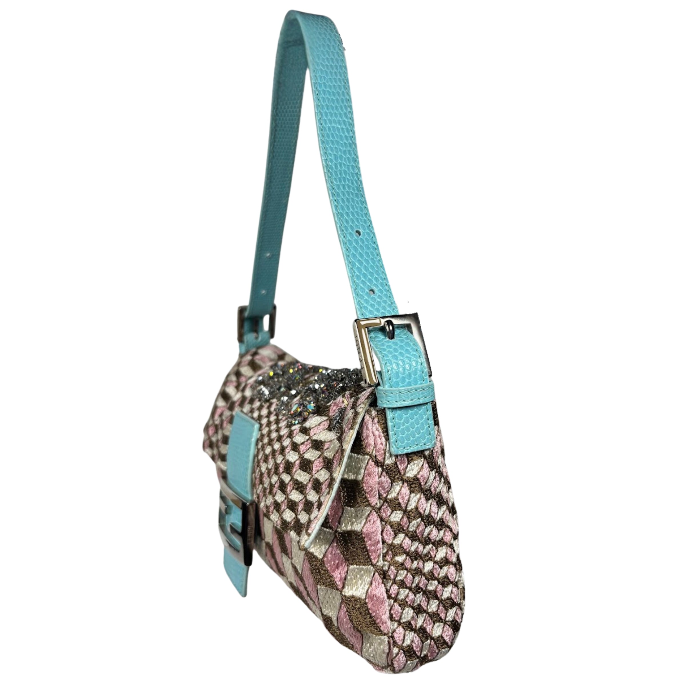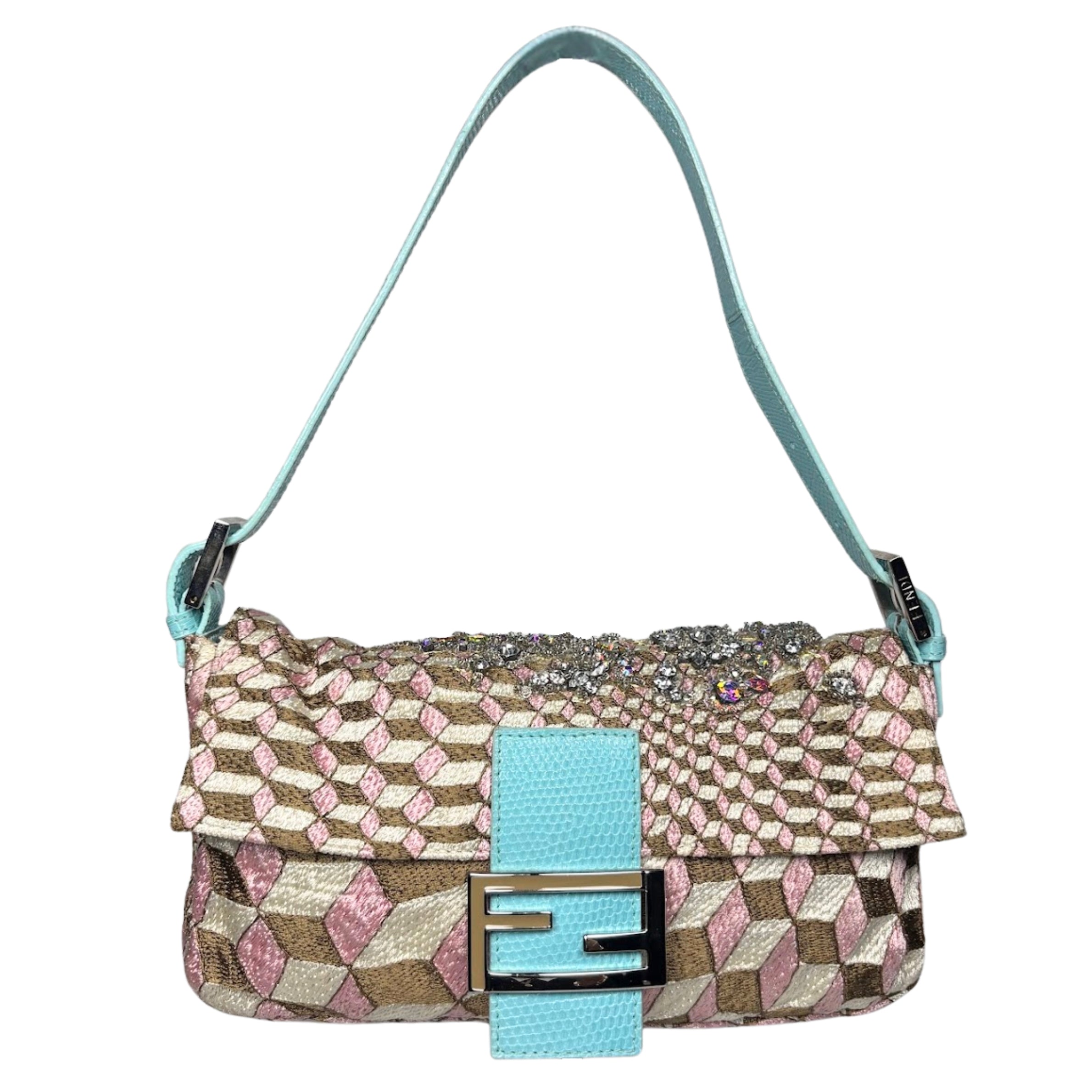 - Fendi Geometric Crystal Embellished Lizard Baguette