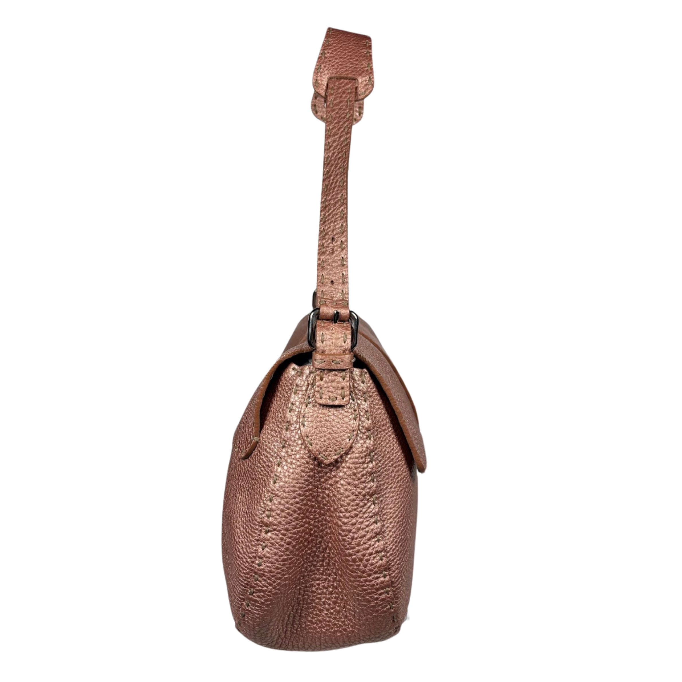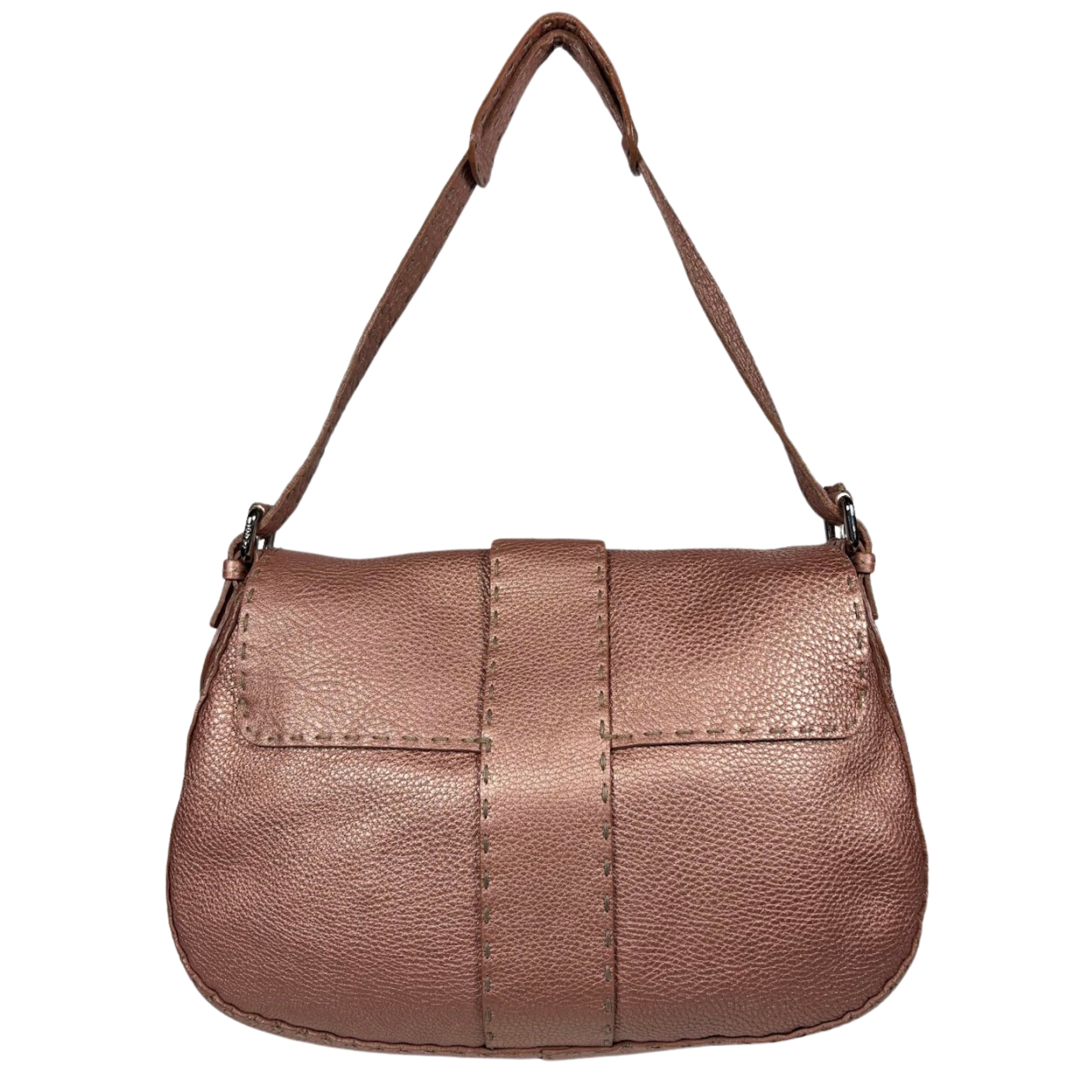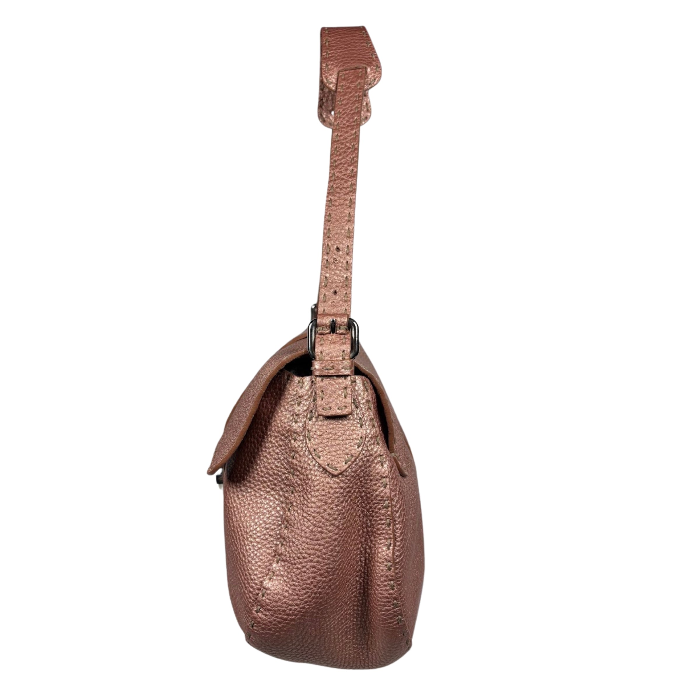 - Fendi Metallic Selleria Pebbled Leather Mamma Baguette