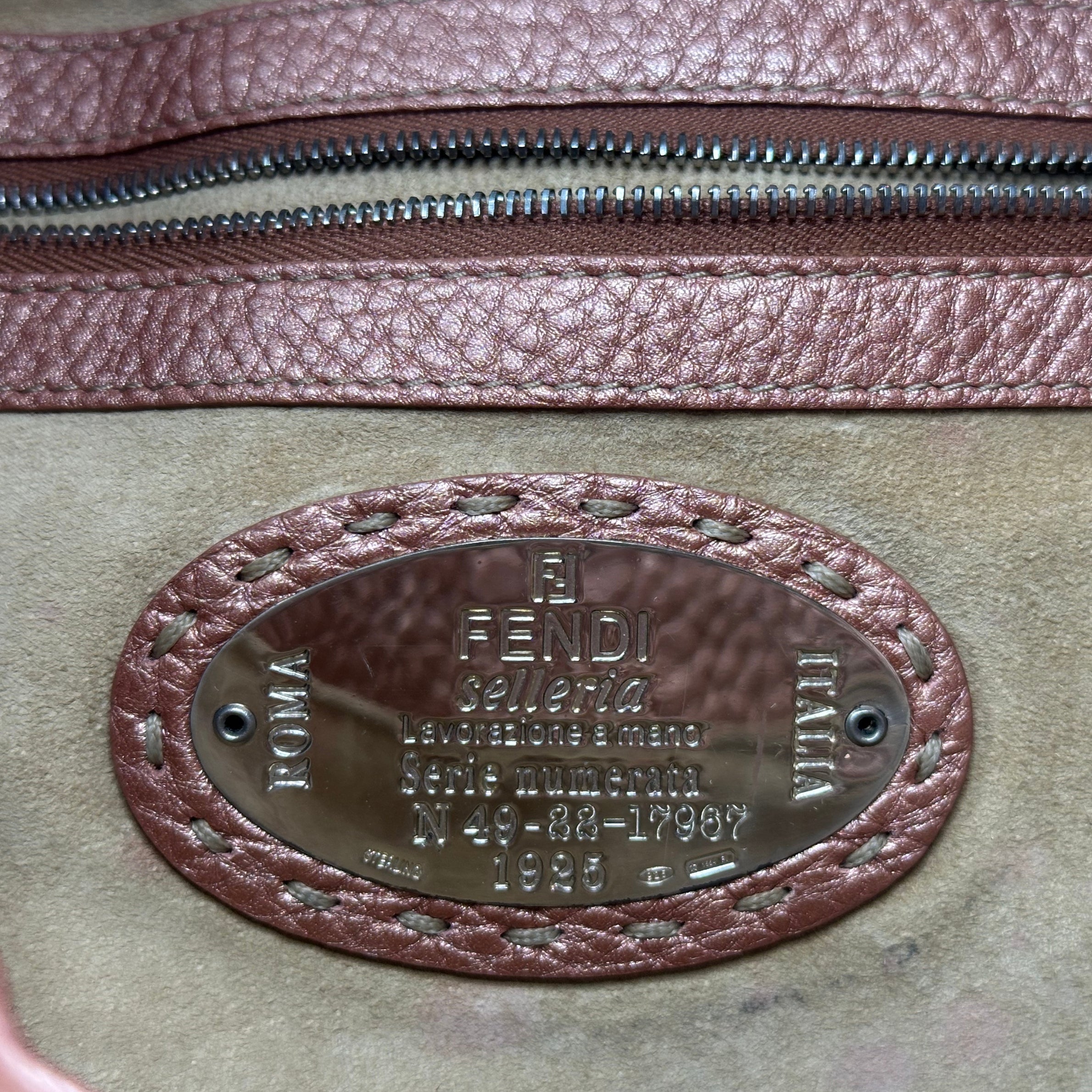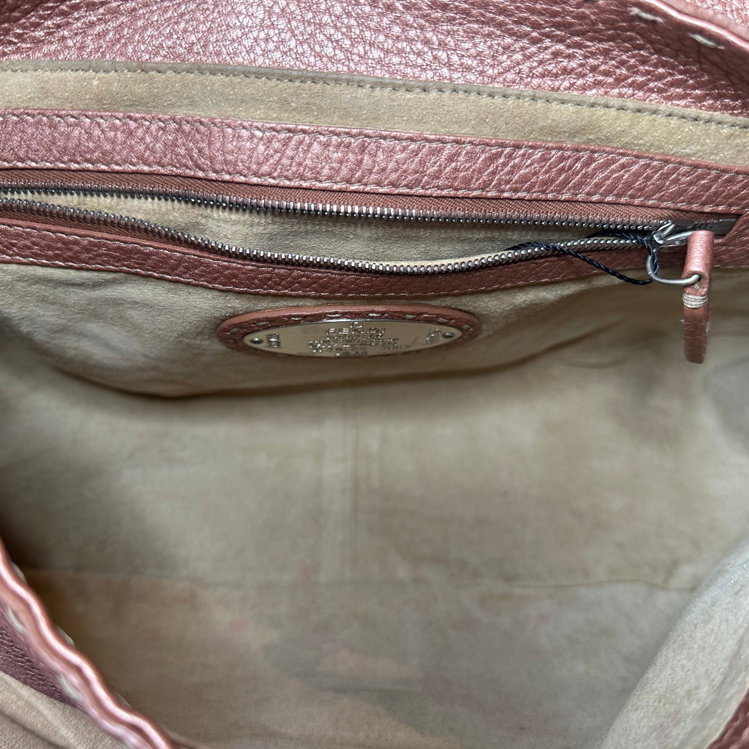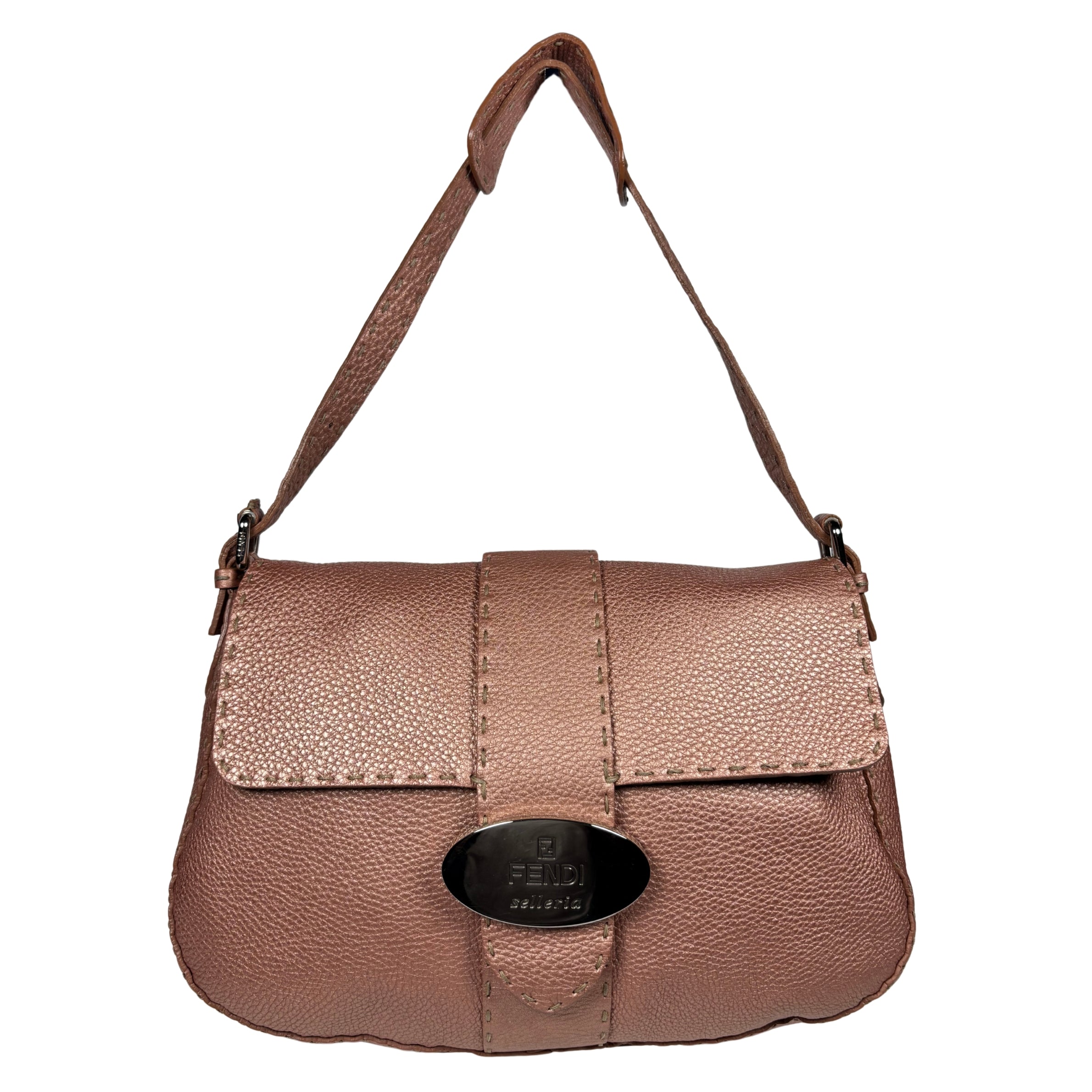 - Fendi Metallic Selleria Pebbled Leather Mamma Baguette