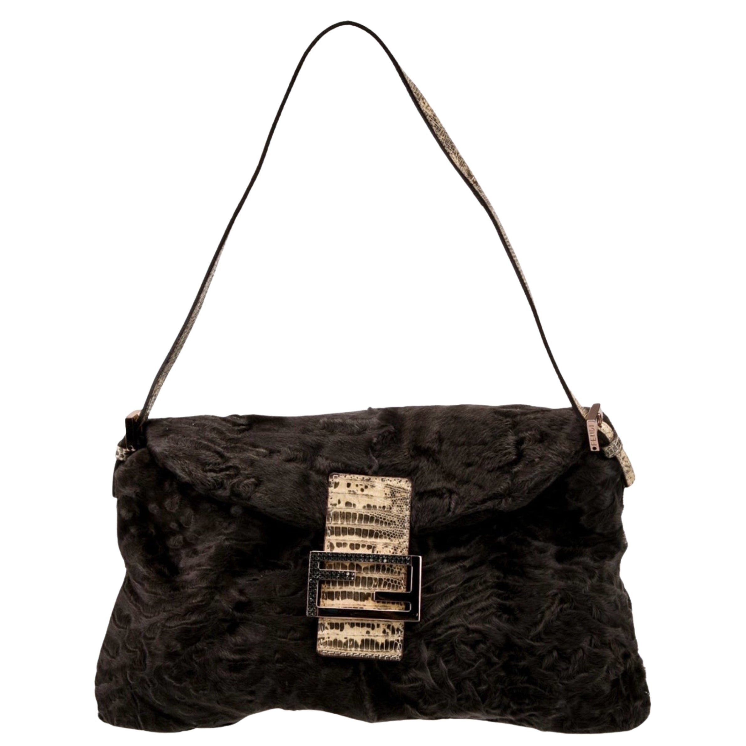 - Fendi Mutan Lizard Trimmed Double Flap Baguette