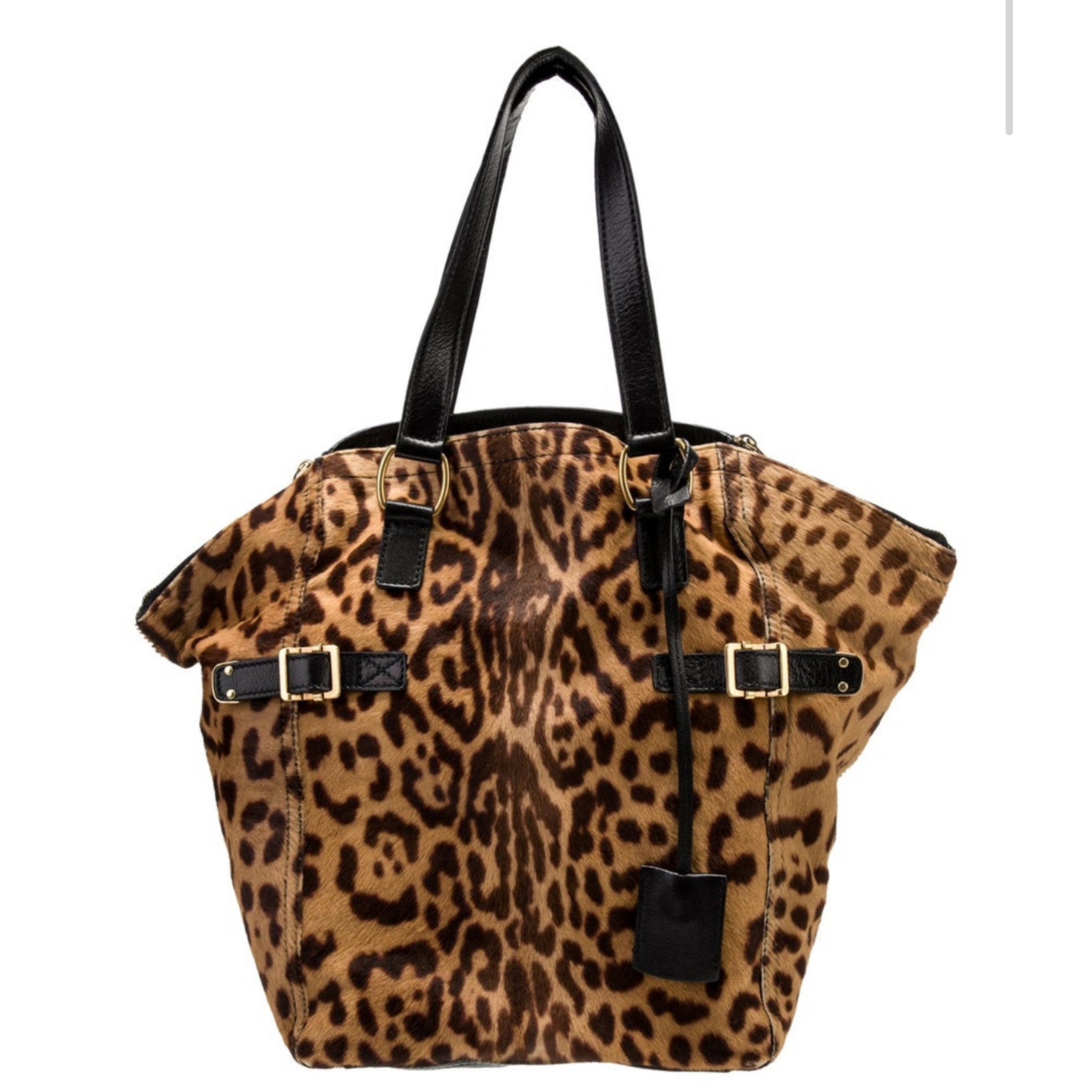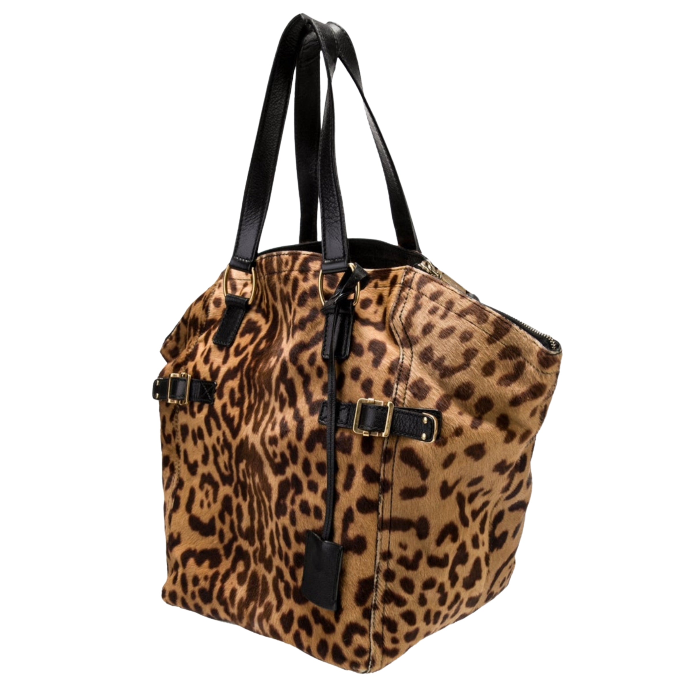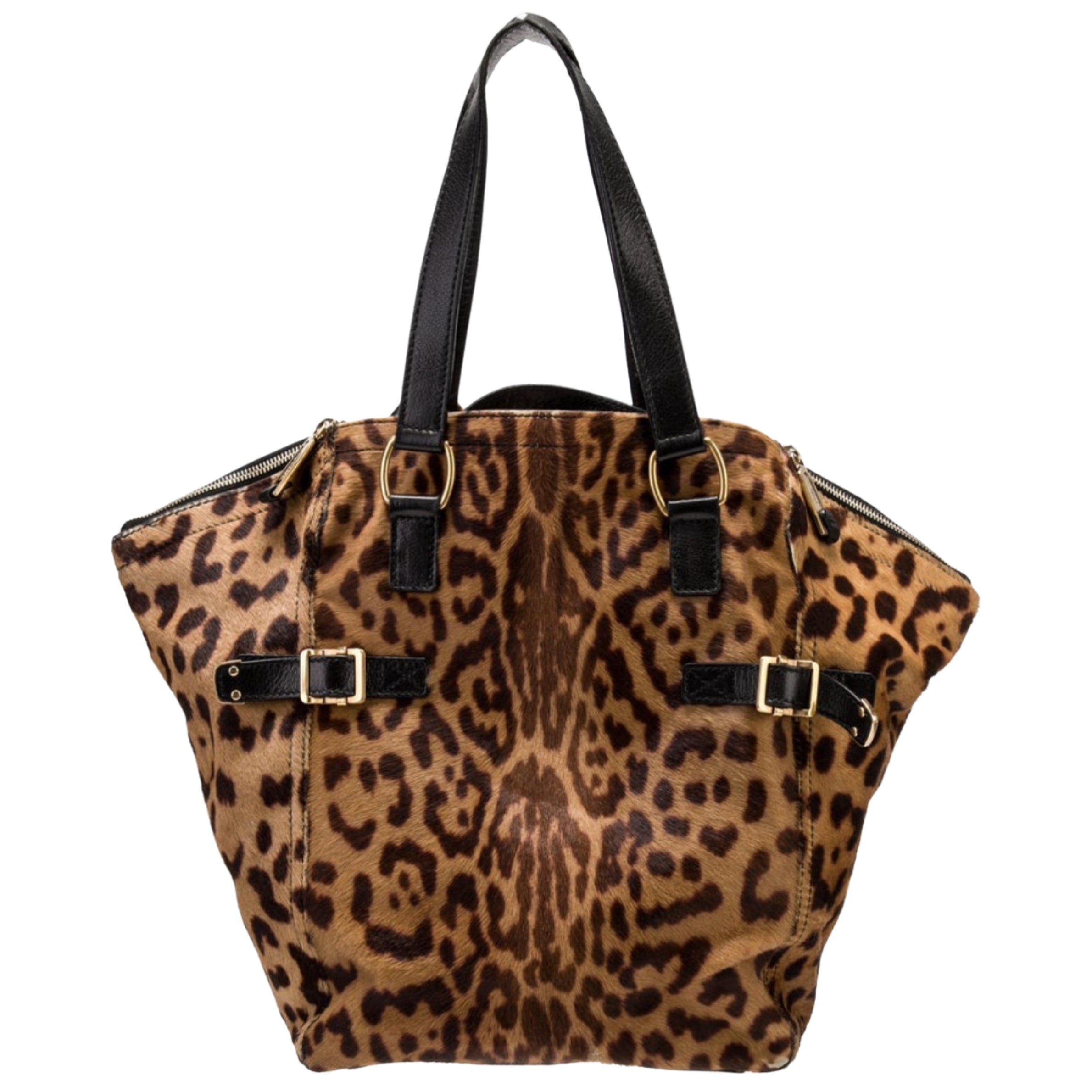 - Yves Saint Laurent Rive Gauche Leopard Printed Pony Hair Downtown Tote